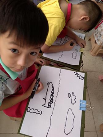 孩子们一起听完志愿者的讲解,了解中华鲟的习性、外形之后,开始画画。然然(小名)一边画一边小声说:"这条中华鲟叫壮壮,就是最快游过海口的那一条,她的好朋友是洋洋。壮壮在拼命向前游的时候,洋洋总会在后面给他加油……"