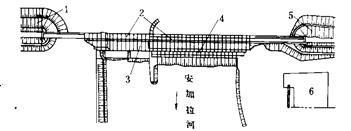 厂房 坝后式厂房,总长515m。初期18台机组,单机容量初为225MW,20世纪70年代更换发电机绕组,单机容量增至250MW。混流式水轮机,转轮直径5.5m,额定水头100m,设计流量254m3/s,转速125r/min;发电机额定功率250MW,额定电压15.75kV,额定功率因数0.85。主变压器布置在坝和坝后厂房之间的平台上。屋外开关站设在左岸。