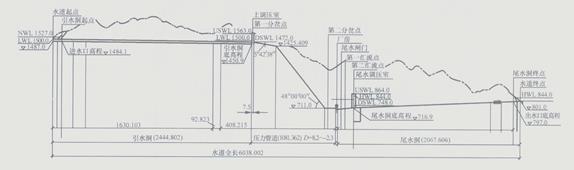 水道系统 上、下水库均为侧式进/出水口。输水道总长约6350m。输水道分成两期,分别对应两个地下厂房。