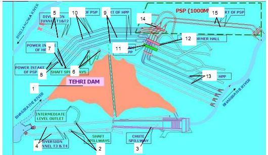 位于印度北方邦特里区的巴吉拉蒂(Bhagirathi)河上。工程主要开发任务为发电、灌溉、防洪和供水。工程分两期建设,一期工程包括一座 260.5m高的土石坝,装机容量为1000MW的常规水电厂,二期工程将建设一座装机容量为1000MW的抽水蓄能电站。采用750kV输电线路将电力 送往密拉特地区。
