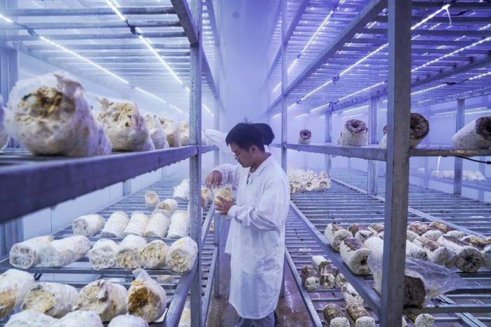 冷冻室里贺凯凡团队正在观察食用菌繁育状况 摄影:陈磊