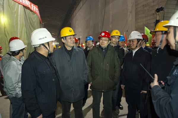 | 三峡集团公司副总经理杨清(前排右二)、樊启祥(前排右三)全程观看的转子吊装,王连生 摄 |