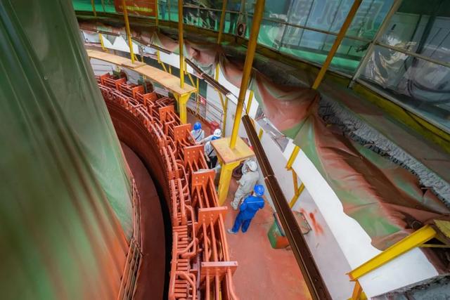 定子是水轮发电机中产生交流电能的核心部件,由定子铁芯、定子绕组和机座三部分组成。定子绕组是绕在定子铁芯上的铜线,相当于发电机定子输出电能的“动脉血管”,在电能转换过程中发挥着重要作用。白鹤滩水电站左岸单台机组定子绕组输出电能功率1000兆瓦、额定电压24千伏、均位居世界水电第一。