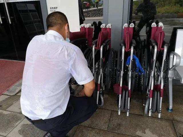 安全无小事,细微见真情。三峡基地发展公司旅游公司景区管理中心坛子岭园区主管杨平正在对坛子岭问询处旁的120急救站门口的轮椅进行检查,确保游客急用时能正常使用。(文图:向琦峰)