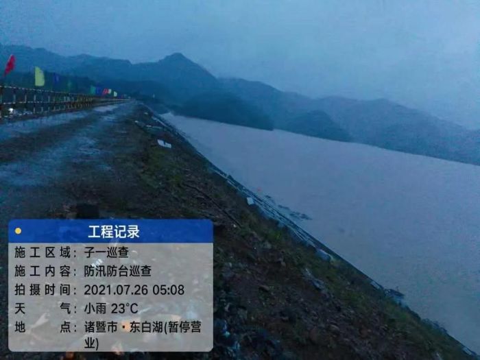 7月24日至27日之间,浙江省诸暨市降雨明显,部分地区遭遇大暴雨,台风带来的暴雨、强风天气也给陈蔡水库加固改造及水源地综合治理项目带来了不小影响。
