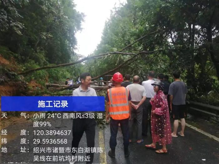 ▲ 7月26日,陈吴线坑坞村段发生山体塌方,道路交通受阻,诸暨三峡项目公司积极调派人员,帮助当地政府及村民开展道路清理工作。