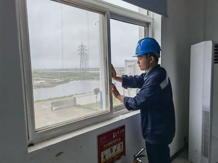 ▲ “烟花”登陆之前,大丰总承包项目部组织岸基集控中心现场作业人员全员撤离施工场地。摄影:周宇