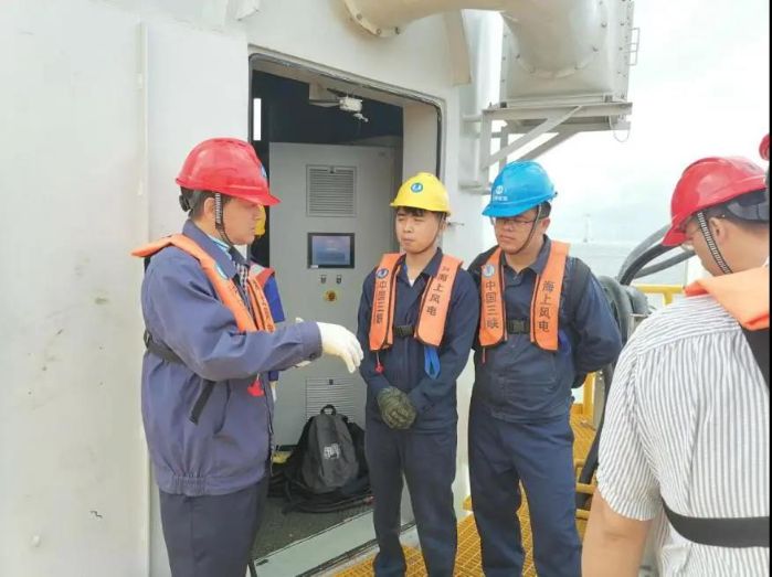 三峡能源江苏如东海上风电项目在台风来临前开展了一次防台风专项安全检查,主要对施工现场的应急物资储备、值班留守人员情况、设备设施固定情况进行核查。安排专人每半小时报送现场风速、浪高、船舶状态等信息,所有船舶保持24小时通讯畅通。