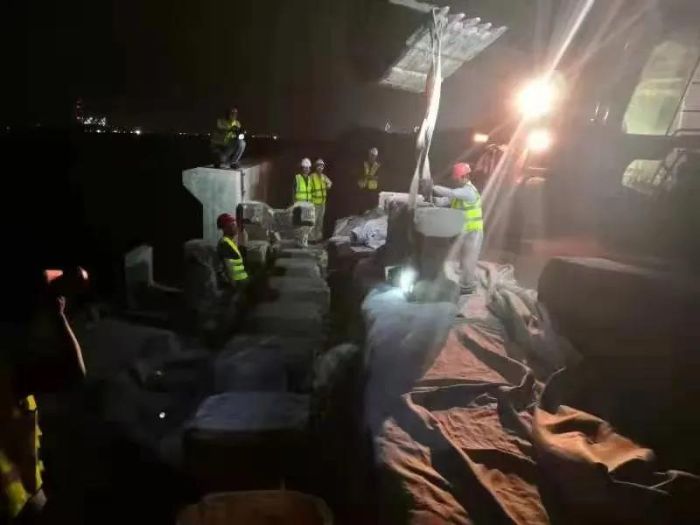 ▲ 镇海安澜项目监理部连夜组织人员完成海堤封堵,并巡查海堤安全情况。