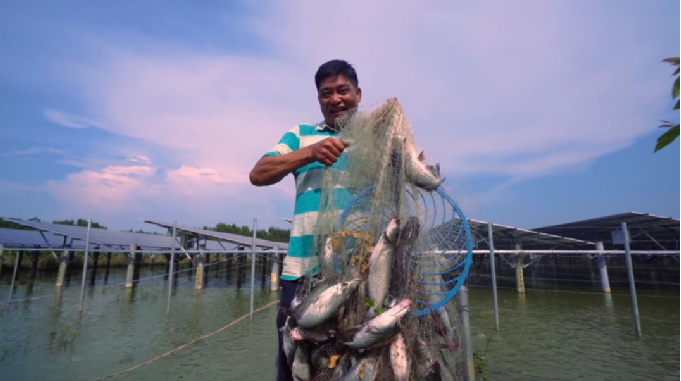 广西宾阳:光伏板下鲤鱼肥 奏响丰收“渔光曲”