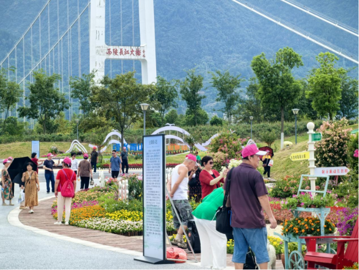 本网讯(秦明硕 王嘉鑫)9月20日,“长江三峡·首届花卉艺术展”在三峡坝区世界著名大坝微缩景观园举行。丰富多样、精美绝伦的花卉艺术作品,展现了三峡坝区生态修复的实践成果。50余种、40万余株各色花卉扮靓大国重器,为游客和观众带来一场视觉盛宴。