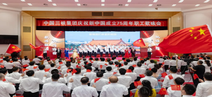 ▲ 三峡集团举办庆祝新中国成立75周年职工歌咏活动现场。摄影:胡九思