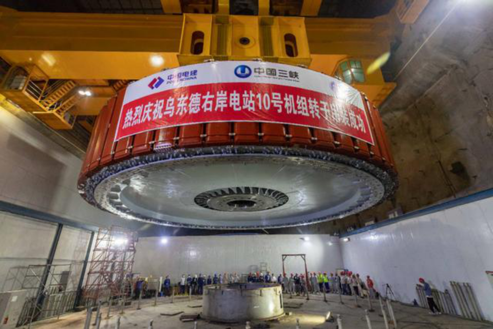 继9月20日乌东德水电站3号水轮发电机组转子吊装成功之后,9月份乌东德水电站又成功实现2台机组转子吊装。至此,乌东德水电站在首批4台机组投产基础上,又有4台机组相继进入总装阶段,为确保2021年7月全部机组投产发电奠定了坚实基础。