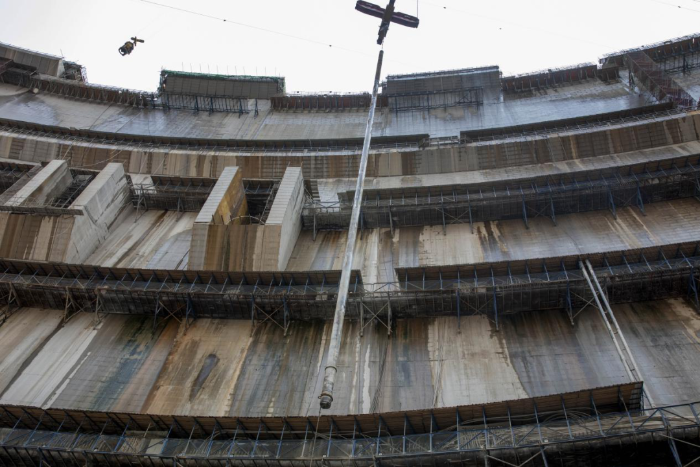 ▲白鹤滩大坝首批坝段浇筑到顶 摄影:陈华钧