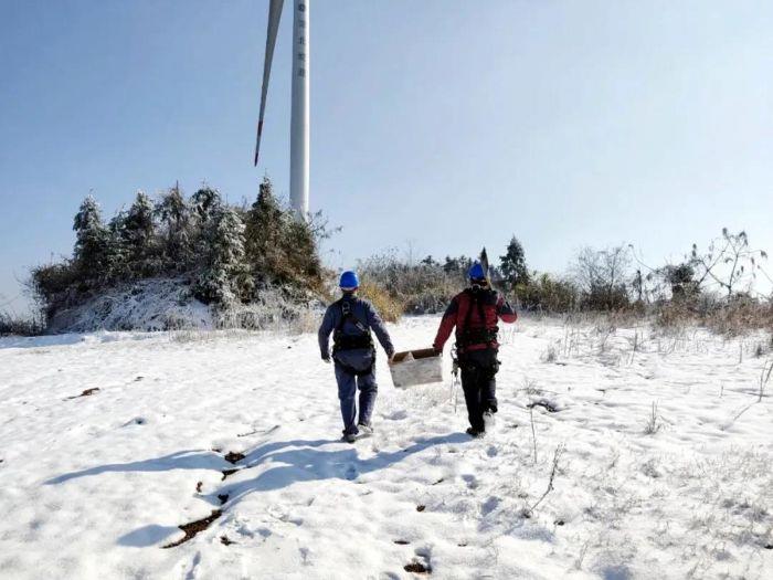在呼啸的山风中,湖北能源新能源公司黄石风电场一台机组发生传感器异常故障。风雪停息后,检修黄金期到来,天寒地冻之中,检修人员以最快速度排除了故障,用冻僵的身体,换来了风机的安全运行……