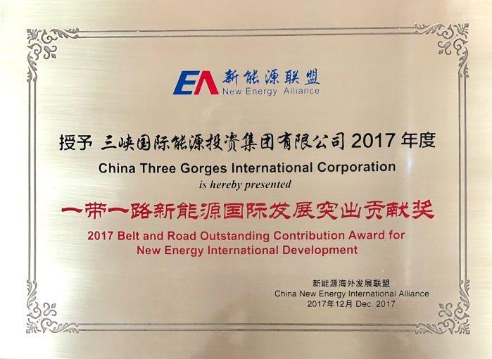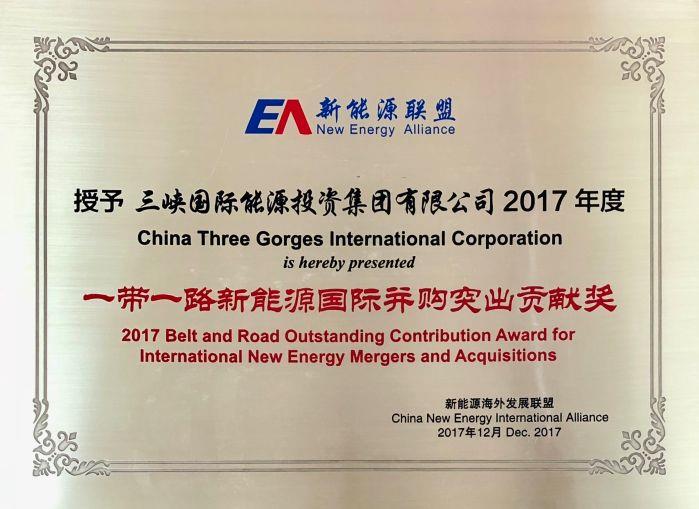 随着“一带一路”建设的持续深入推进,新能源日益成为国与国之间,以及行业、企业间的合作亮点和投资重点。为更好地服务“一带一路”倡议,促进新能源企业国际化发展,挖掘和推介在“一带一路”建设中作出突出贡献的先锋企业,中国新能源海外发展联盟组织开展了2017“一带一路”新能源国际发展突出贡献奖评选活动,并在本次大会发布评选结果。在全部九类奖项的评比中,三峡国际表现抢眼,不仅揽获“国际并购突出贡献奖”,更摘得最有分量的“国际发展突出贡献奖”。