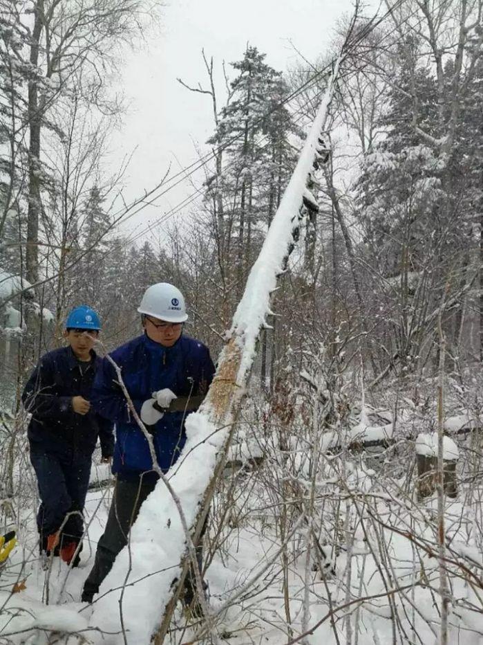 暴雪过后,第一时间清理跌落在3#台变围栏内以及风机附近架空线路上的树木。