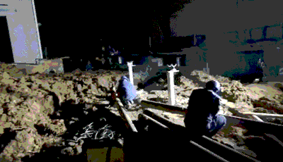 晚上9点30分,现场灯火通明,我们已经完成约70米热力管道安装。