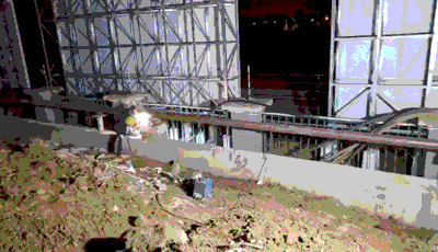 夜晚寒气很重,在现场打磨机的呲呲声中、焊接火花的渲染下,显得那么暖烘烘,那么有生气。