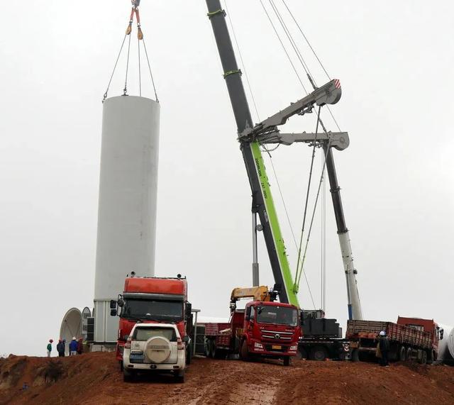 国家能源局重点扶贫项目三峡新能源甘肃清水风电项目塔筒吊装现场