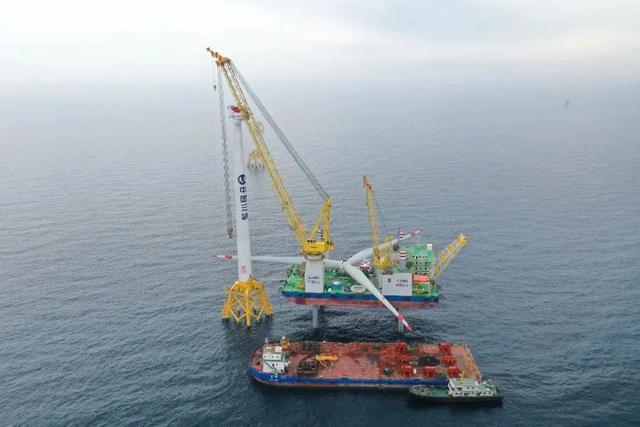 三峡新能源广东阳江阳西沙扒一期海上风电项目 2020年首台风机吊装现场