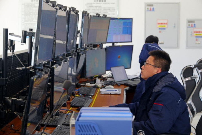 ▲ 庄河海上风电场的陆上运维中心的工作人员在远程监测海上风机运转情况(左凌仁供图)
