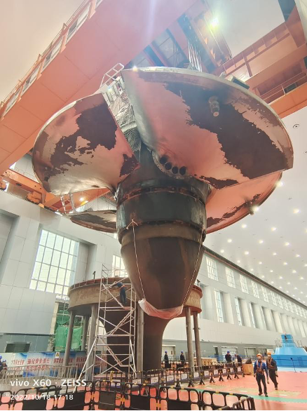 ▲2022年10月18日,葛洲坝水电站2号转轮顺利吊出。摄影:洪国标