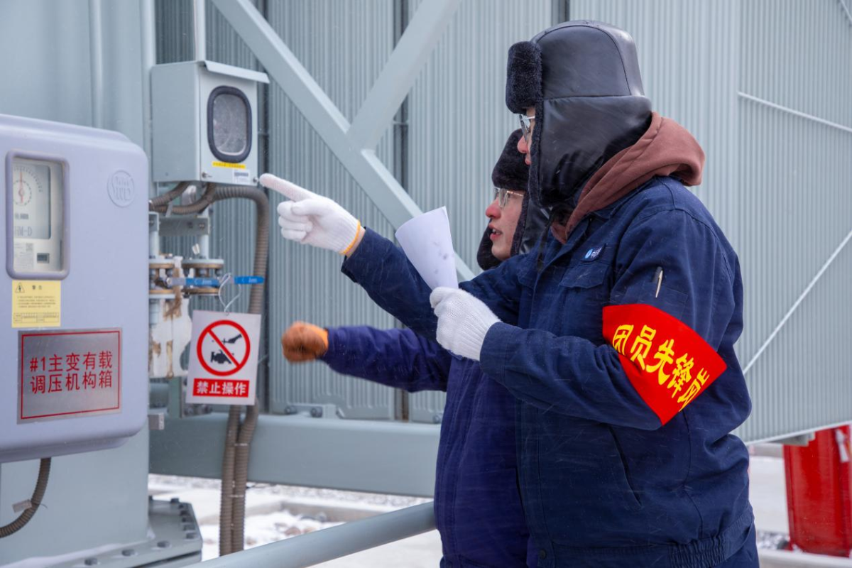 内蒙古包铝园区绿电三峡风电场运维人员冒着严寒在升压站巡检 摄影:张博文