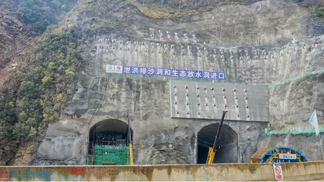 ▲ 建设中的山阳抽蓄电站泄洪排沙洞和生态放水洞进口 摄影:袁向南