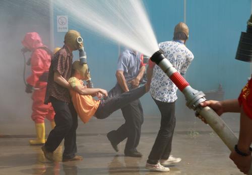 | 应急救援实战演练现场。(华吟江 摄) |