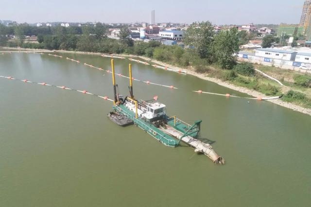 岳阳市东风湖水环境综合治理工程底泥疏浚项目淤泥绞吸船正在工作