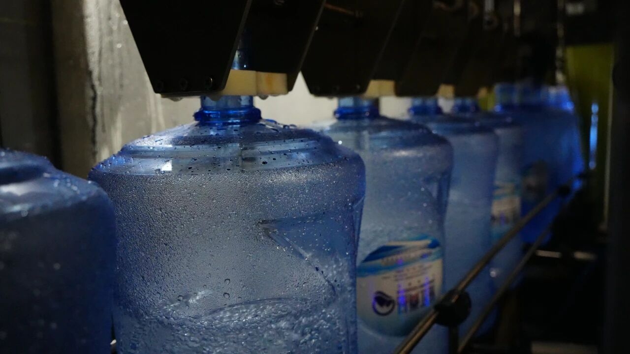 占地4000平方米的生产车间内,流水线运转不息:空桶列队前行,完成注水、封盖、贴标工序……每天11小时的运转,见证着清江好水的价值转化。