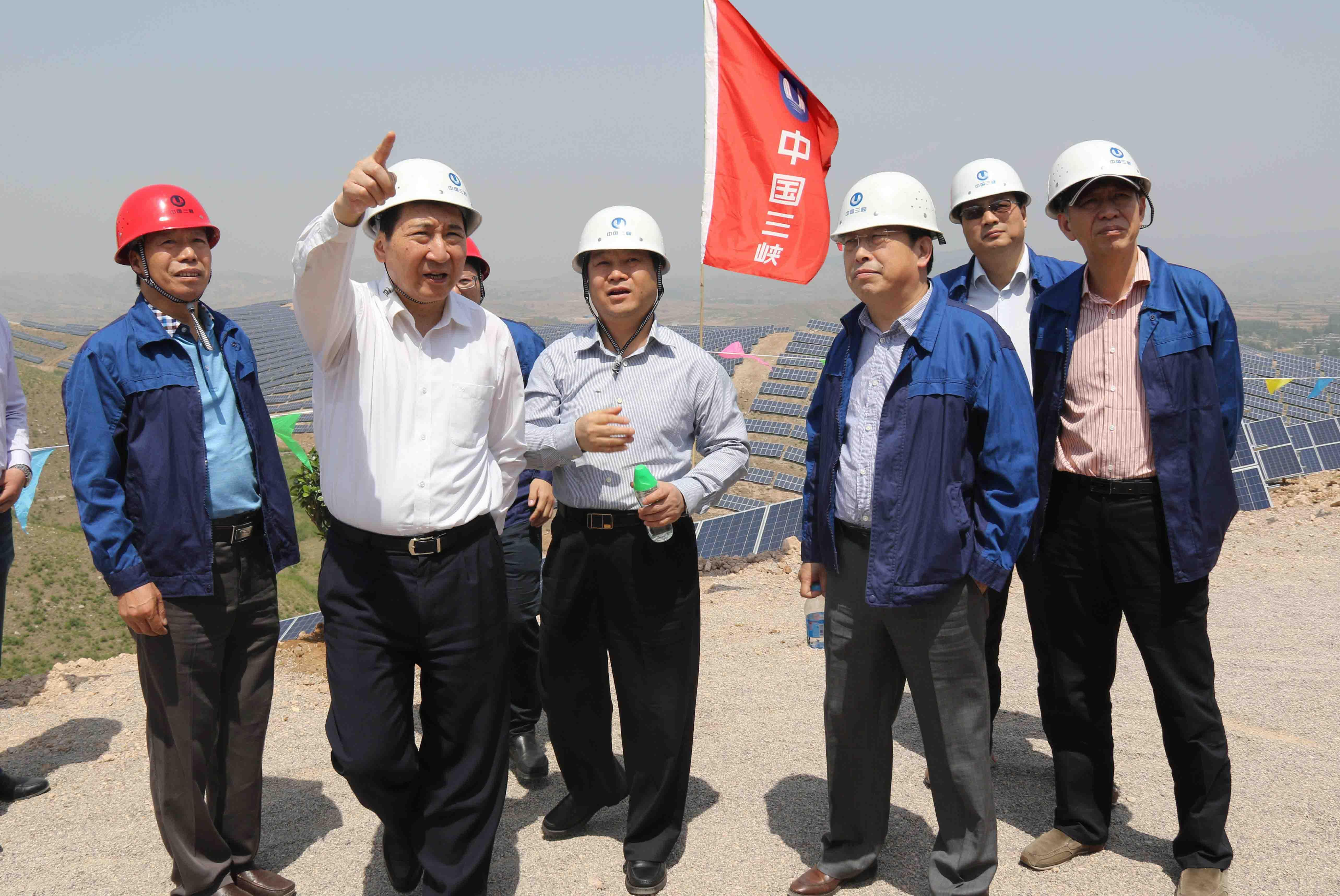 三峡集团董事长卢纯(左二)在曲阳光伏项目现场 武学雷摄影