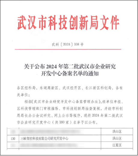 2024-11-05 三峡智控成功入选武汉市企业研究开发中心。武汉市科技创新局公布了2024年第二批武汉市企业研究开发中心...
