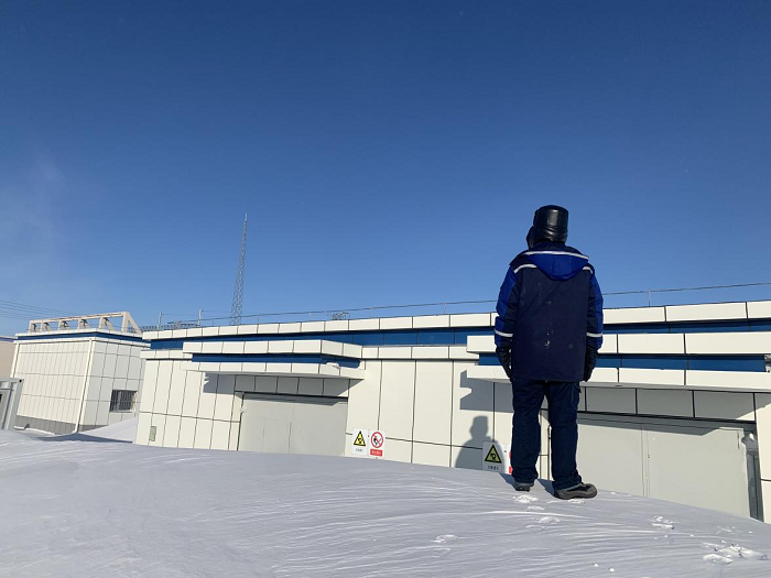 如果说《我的阿勒泰》中那仁夏牧场让人心旷神怡,那么阿勒泰的冬天绝对会给人留下更为深刻的印象,2024年2月18日属地最低气温降至-52.3摄氏度,打破新疆有记录以来最低气温极值,原纪录为-51.5摄氏度,出现在1960年1月21日。布尔津风电场于2022年末至2023年初也曾多次遭遇极端严寒天气及“白毛风”影响,最具代表性的当属2022年11月26日的寒潮天气侵袭,此次极端天气导致场站气温骤降至-38℃。本次极端天气发生当天,风电场及时响应寒潮红色预警,对应急物资提前准备,调用装载机作为现场清雪救援应急车辆,发动全员铲除站内积雪,开辟出场道路。风机故障处理人员在“白毛风”肆虐能见度不足的情况下迷失方向,回撤过程中陷车,天地一色,人员受困待援。