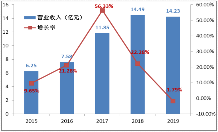 ▲2015-2019年“500强”后100名企业营业收入及增长率