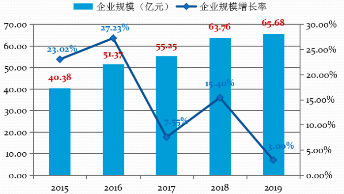 从入选企业平均规模来看,2019“500强”中国企业平均营收规模为65.68亿元,同比增长3%;而2018则为63.76亿元,同比增长15.40%。