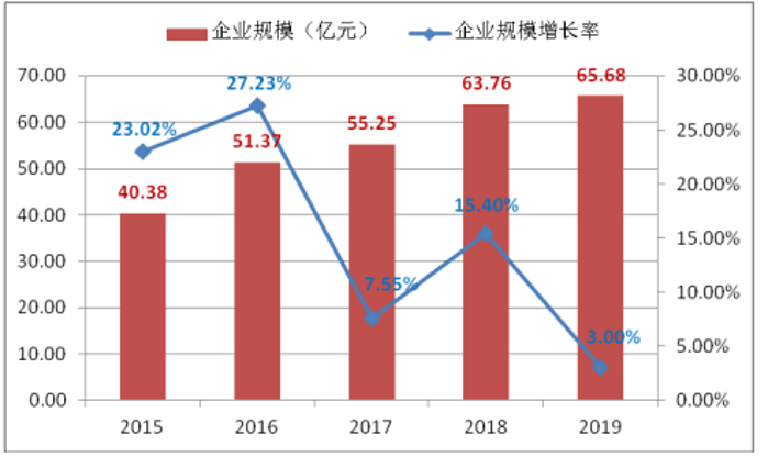 ▲2015-2019年“500强”中国企业平均营收规模及增长率情况