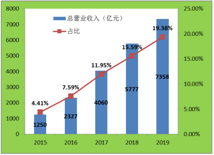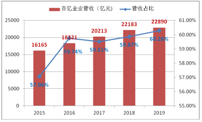 ▲2015-2019年“500强”百亿企业营收及营收占比情况