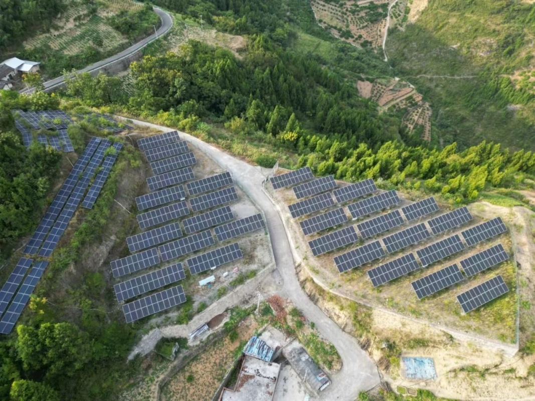 位于三峡村老十队山头的村光伏电站,一排排太阳能光伏板整齐排列。这座由三峡集团帮扶建设的光伏电站,被誉为村民致富增收的“阳光工厂”。